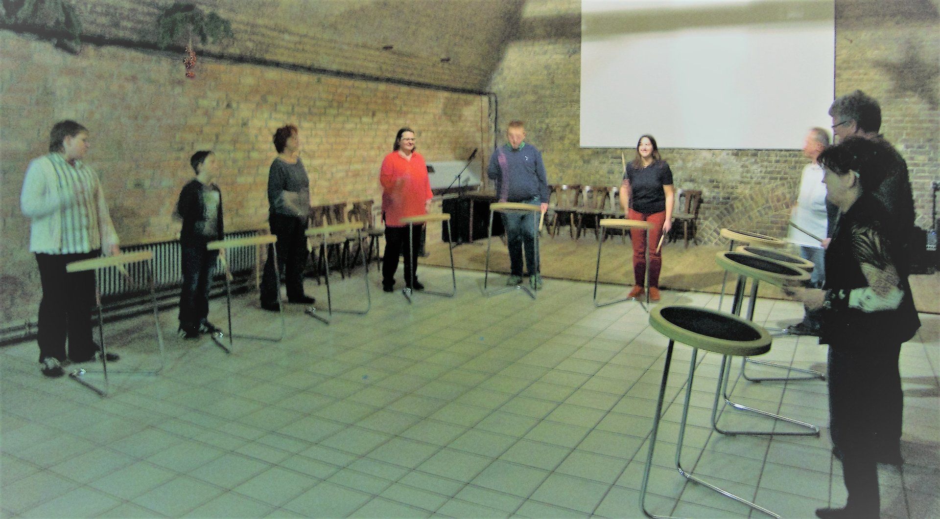 "Trommeln macht glücklich" Steffi Keil - in der Mitte mit roter Mütze - traf sich am Mittwoch mit Teilnehmern ihrer Kurse in Wriezen und Bad Freienwalde im Wriezener Humpensaal. Dessen Betreiber Andreas Ewald (hinten 4. v. r.) vermittelt hin und wieder sogar Auftritte. © Foto:OZ/Anett Zimmermann Anett immermann/ 22.12.2017, 06:00 Uhr